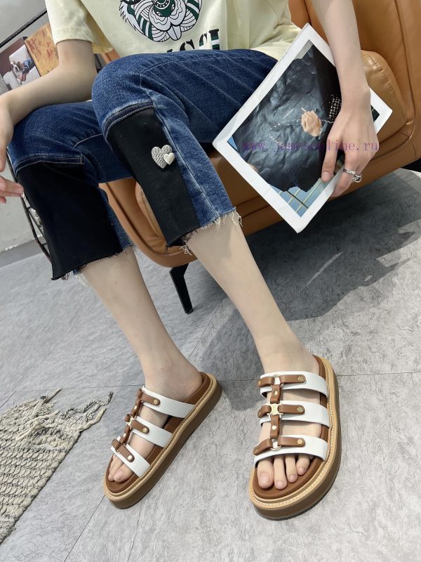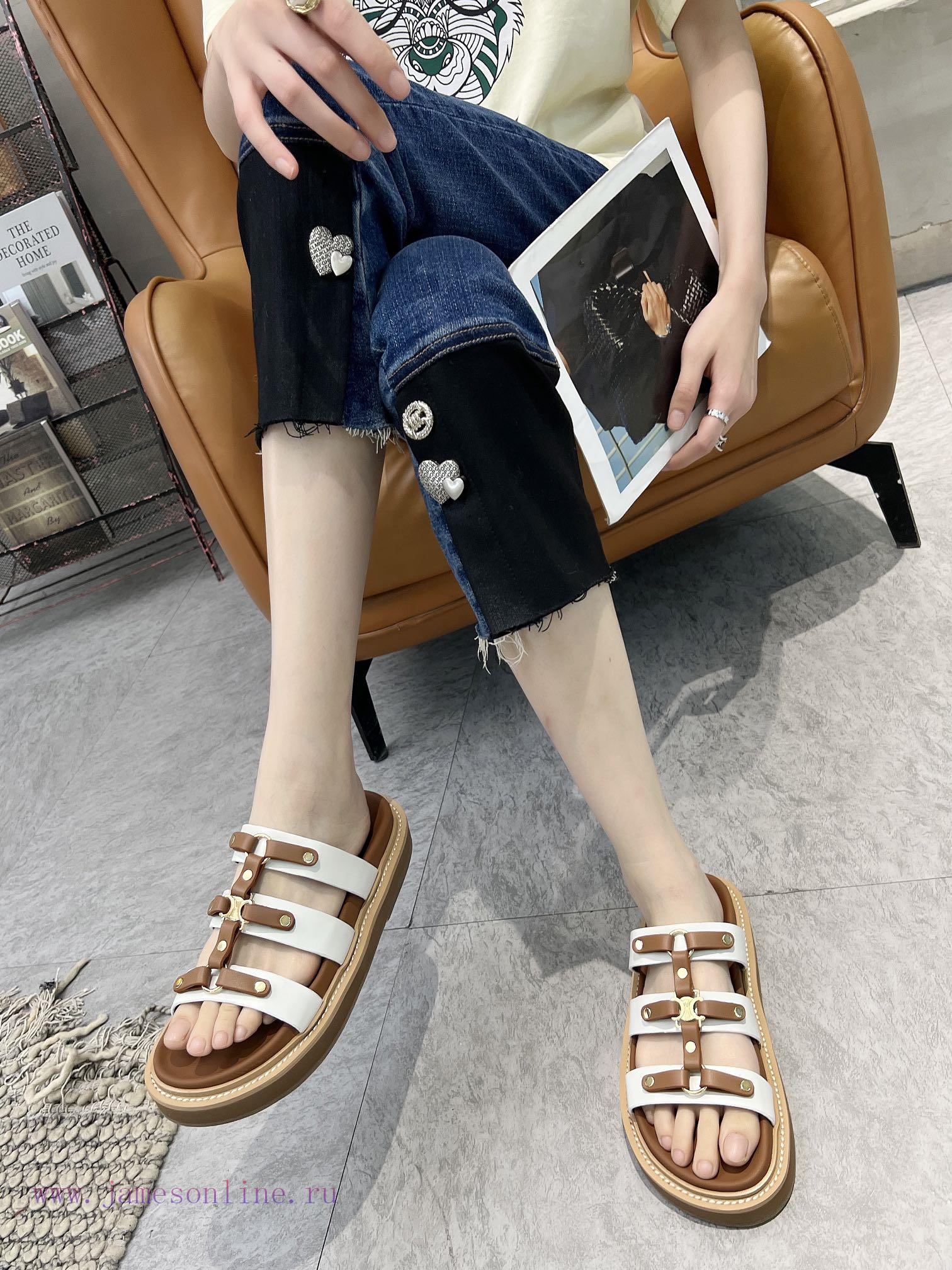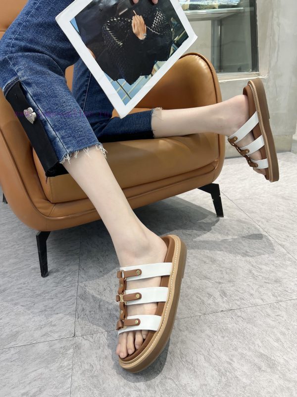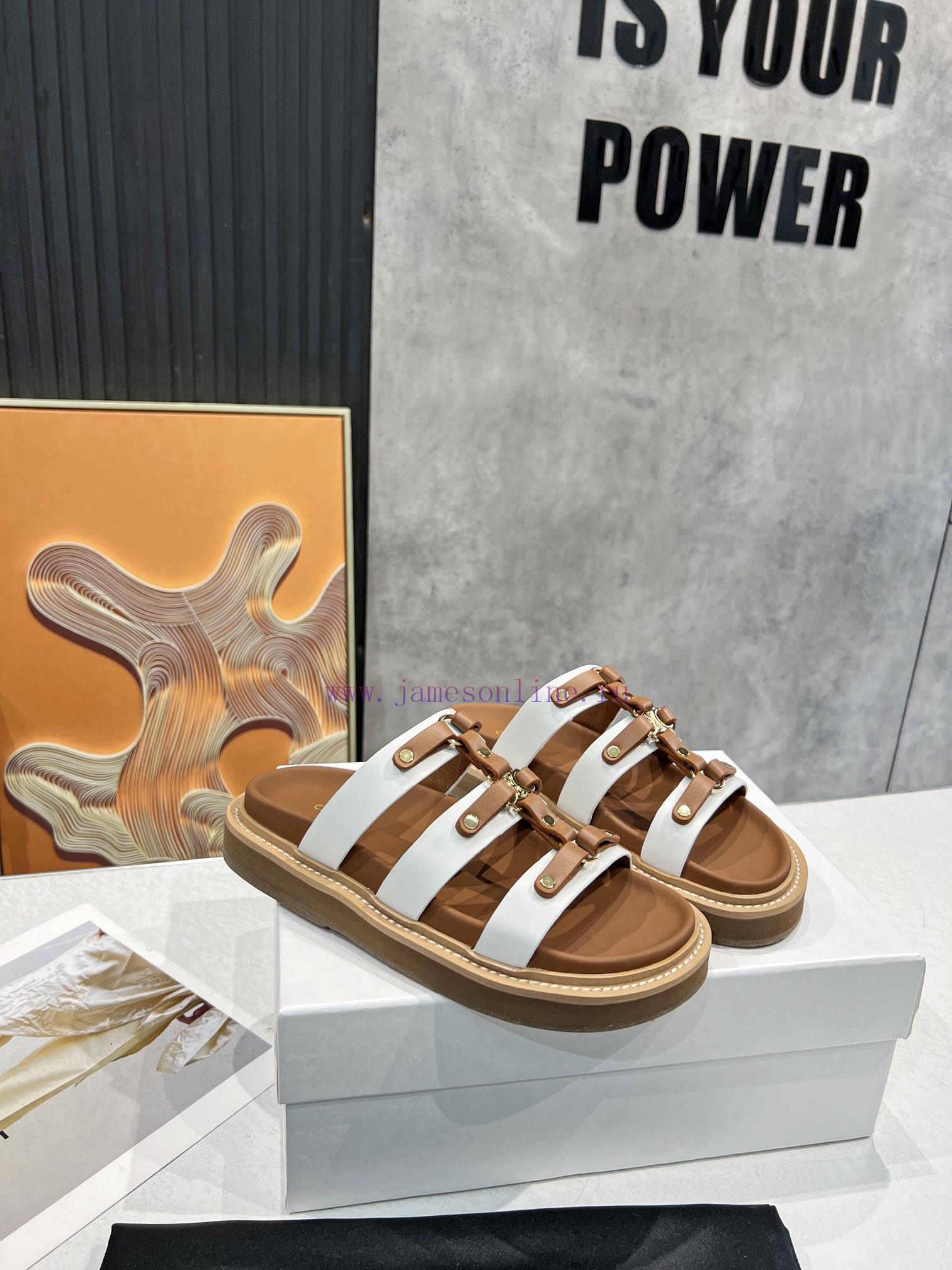 Original replica Celine24 new color Celine Silin TIPPI new contrasting white and brown vegetable tanned cowhide flat slippers 35-41