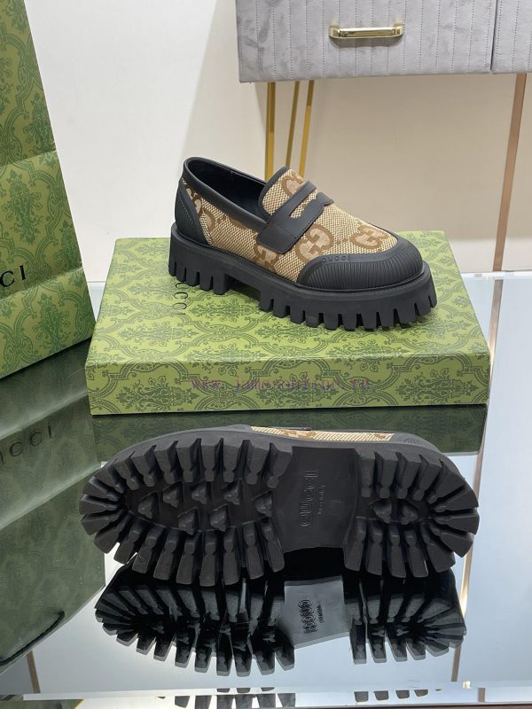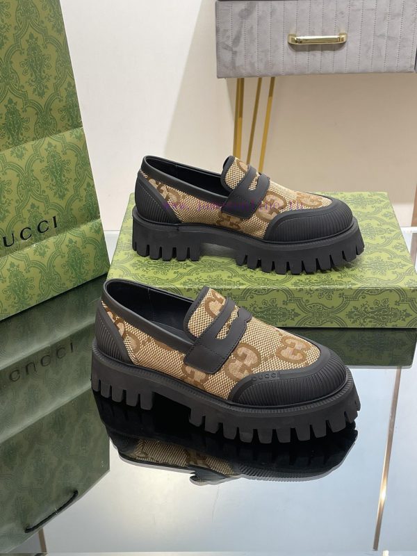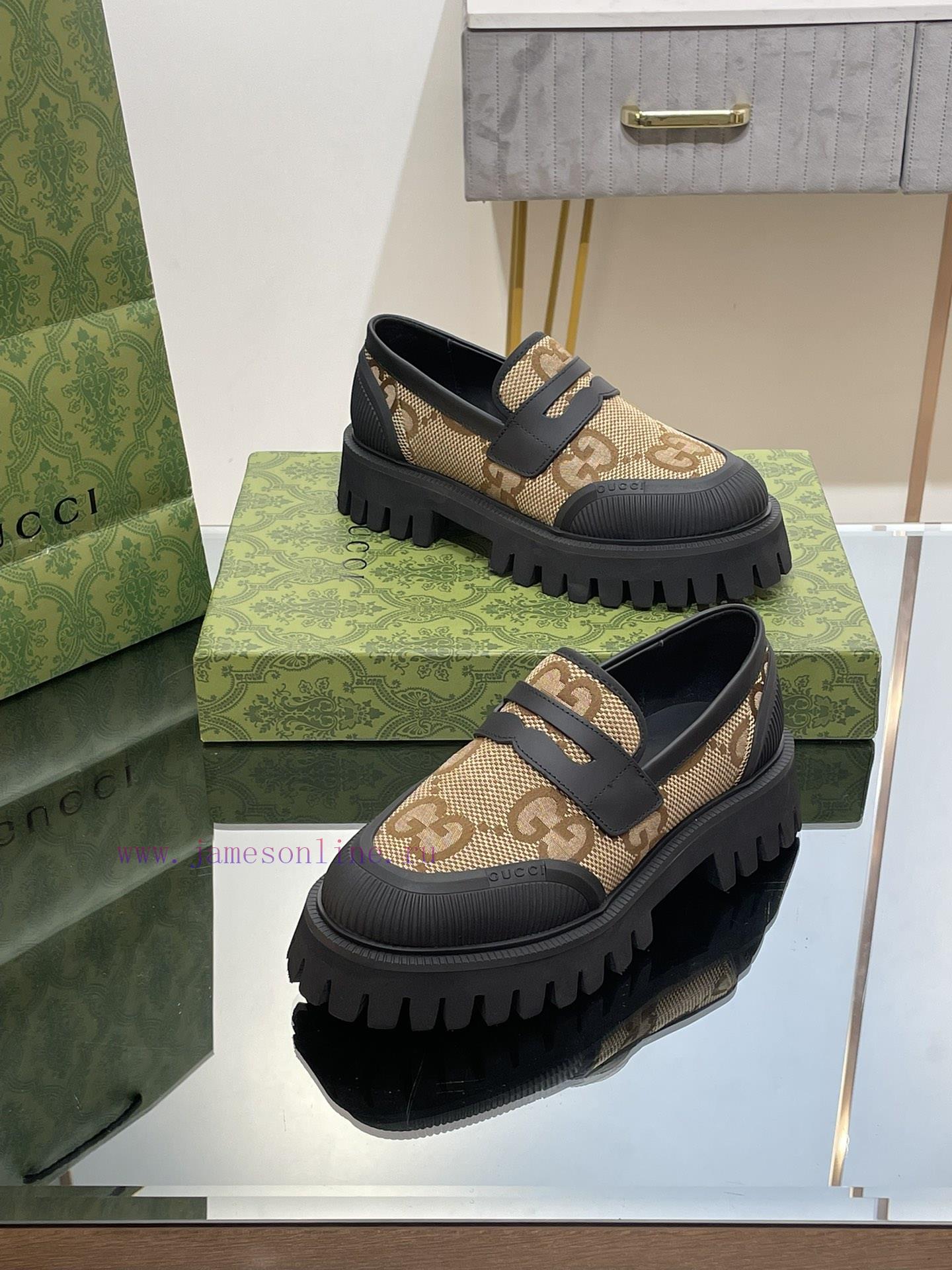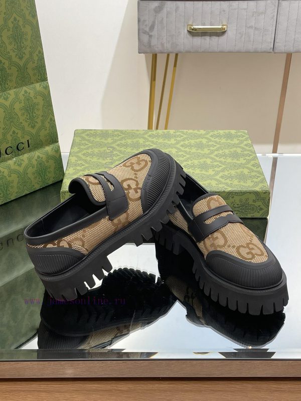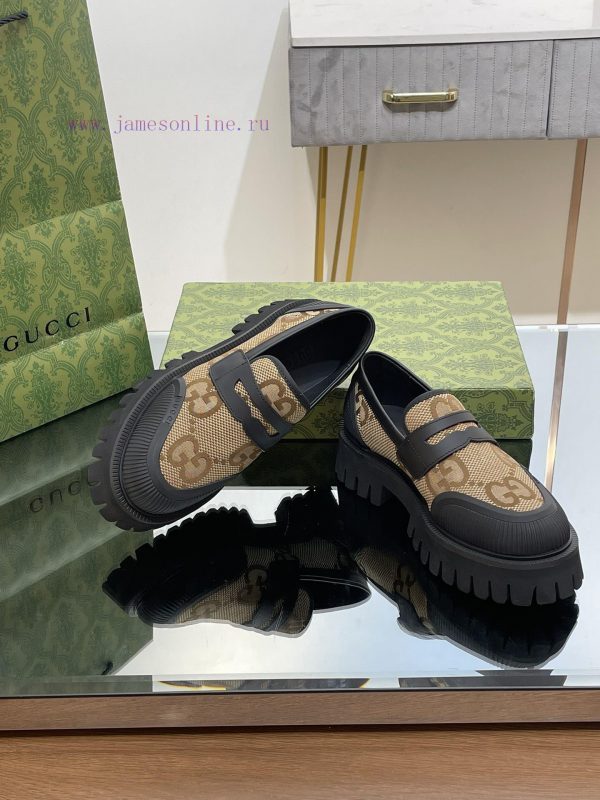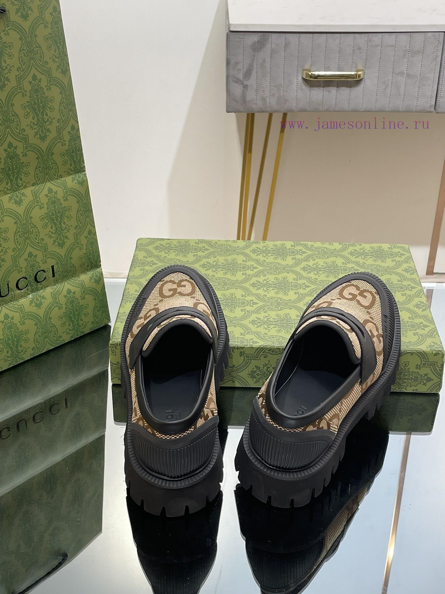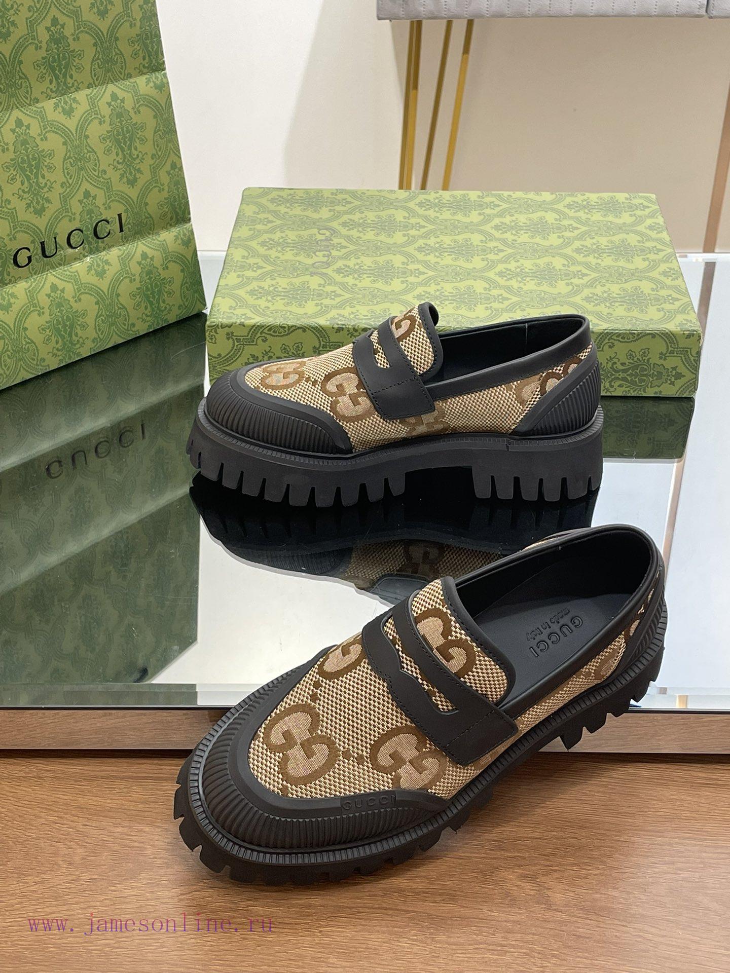 23 Gucci Thick soled GG Couple Shoes Academy Style Retro Casual Shoes Original Custom 11 RemakesThe purchasing agent level is comparable to GZ without any differenceImported calf leather upper with double GG woven fabricLeather lining/footrest11 original mold opening ultra light material wear-resistant bottomSize for Men and Women 35-46 (Female 4041 Male 4546 Customized)Heel height 4 centimeters, forefoot water table 3 centimetersGreen full set packagingThis pair of fitted couple shoes features a large design that interprets the interweaving pattern of the first letters of the brand founder Guccio Gucci’s name. The grooved sole and contrasting rolled edges add a touch of modern fashion, cleverly blending different chapters of the brand’s heritage