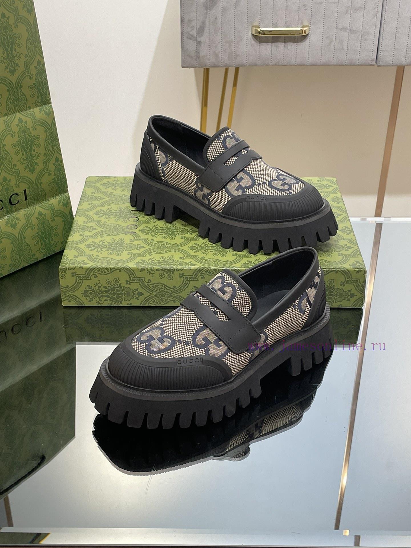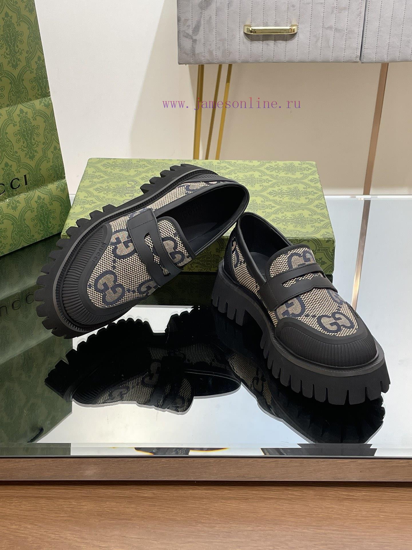 23 Gucci Thick soled GG Couple Shoes Academy Style Retro Casual Shoes Original Custom 11 RemakesThe purchasing agent level is comparable to GZ without any differenceImported calf leather upper with double GG woven fabricLeather lining/footrest11 original mold opening ultra light material wear-resistant bottomSize for Men and Women 35-46 (Female 4041 Male 4546 Customized)Heel height 4 centimeters, forefoot water table 3 centimetersGreen full set packagingThis pair of fitted couple shoes features a large design that interprets the interweaving pattern of the first letters of the brand founder Guccio Gucci’s name. The grooved sole and contrasting rolled edges add a touch of modern fashion, cleverly blending different chapters of the brand’s heritage