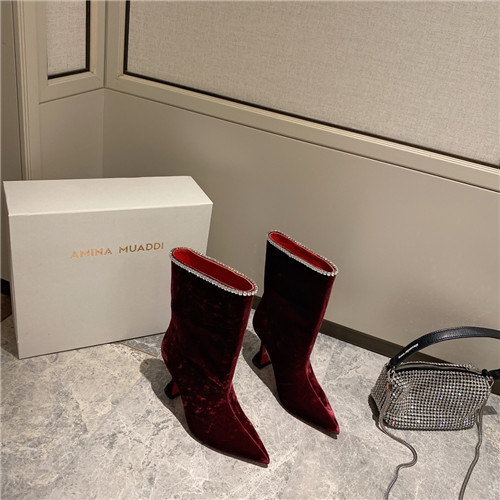 amina muaddi sexy velvet short boots