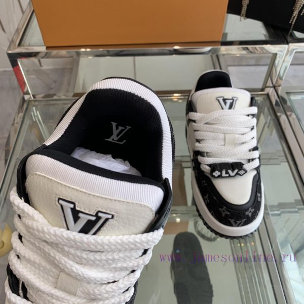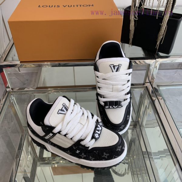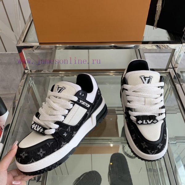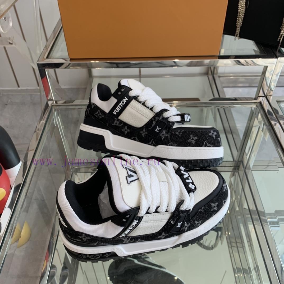 Louis Vuitton 2024 new denim LV Trainer chubby couple’s bread shoes casual sports shoes board shoesThe style I bought with my eyes closed breaks the monotony of color and makes me younger. Fat trainers can also be called ‘fat shoes’, with a cute and adorable appearance. I love the most classic fat shoe style, which is high-end and elegant. Each style’s color scheme is greatOriginal imported top layer kraft lining, customized breathable mesh, TPU combination, large base size 35-44
