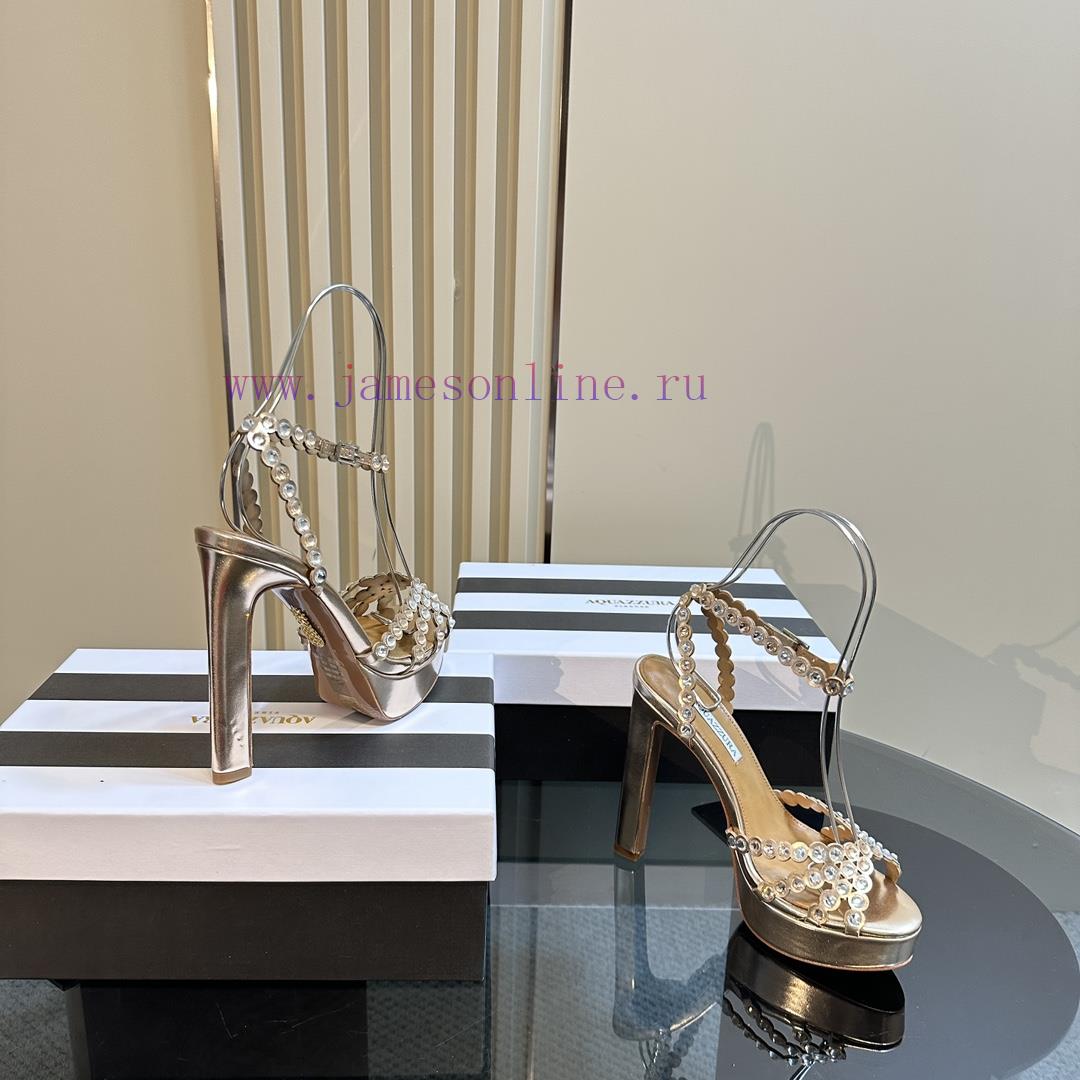 The Aquazzura 2024 classic high-heeled waterproof platform rhinestone sandals are truly beauu487ahro