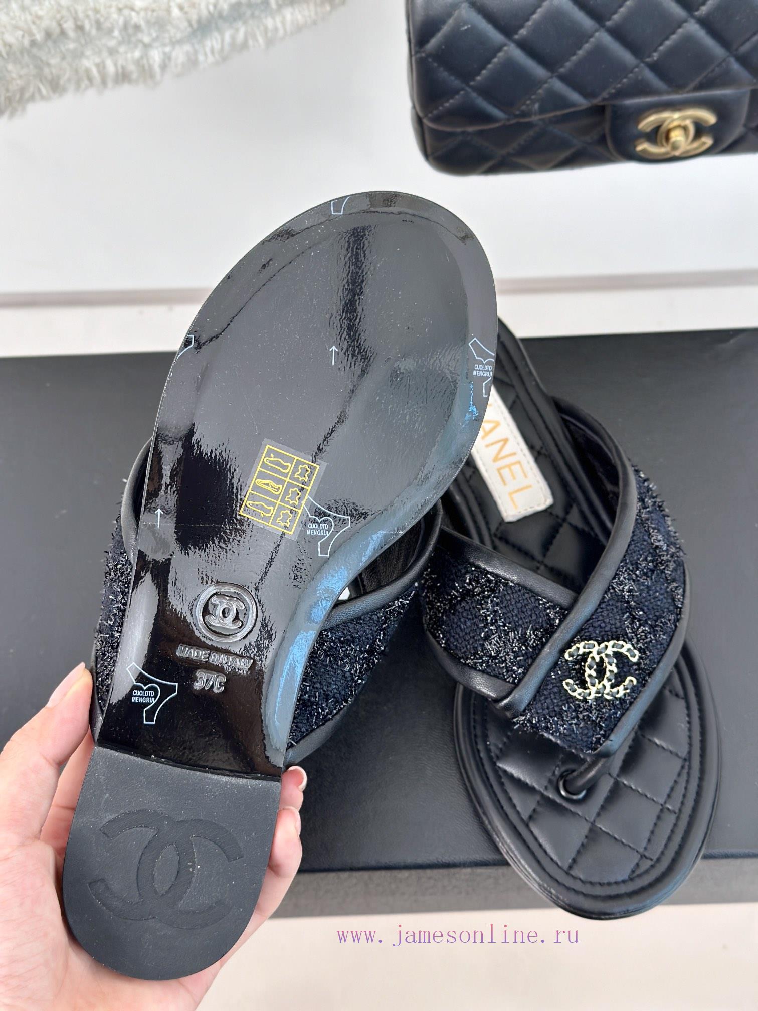 Chanel | 24P Spring/Summer New ProductsDouble C diamond grid clip on flip flopsSummer flip flops inexplicably make people feel freeWearing the double C crystal logo embedded is too exquisiteIt looks too good too, isn’t it? The upper foot is super delicate and appears whiteThe shoe upper is made of original customized materialImported sheepskin is used insideItalian imported cowhide outsoleZesi35-3934/40/41 customization